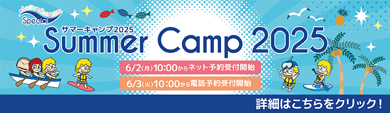 | 2025.06.30 | 夏の短期水泳教室の日程を公開いたしました。6/30(月)11時~フロント申込み、7/3(木)11時~電話予約開始!日程詳細はこちらをご覧ください。 |