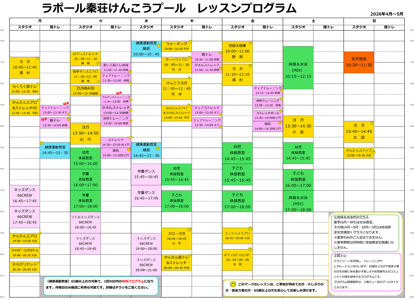 | ヨガ | 月・火 木・金 土・日 |